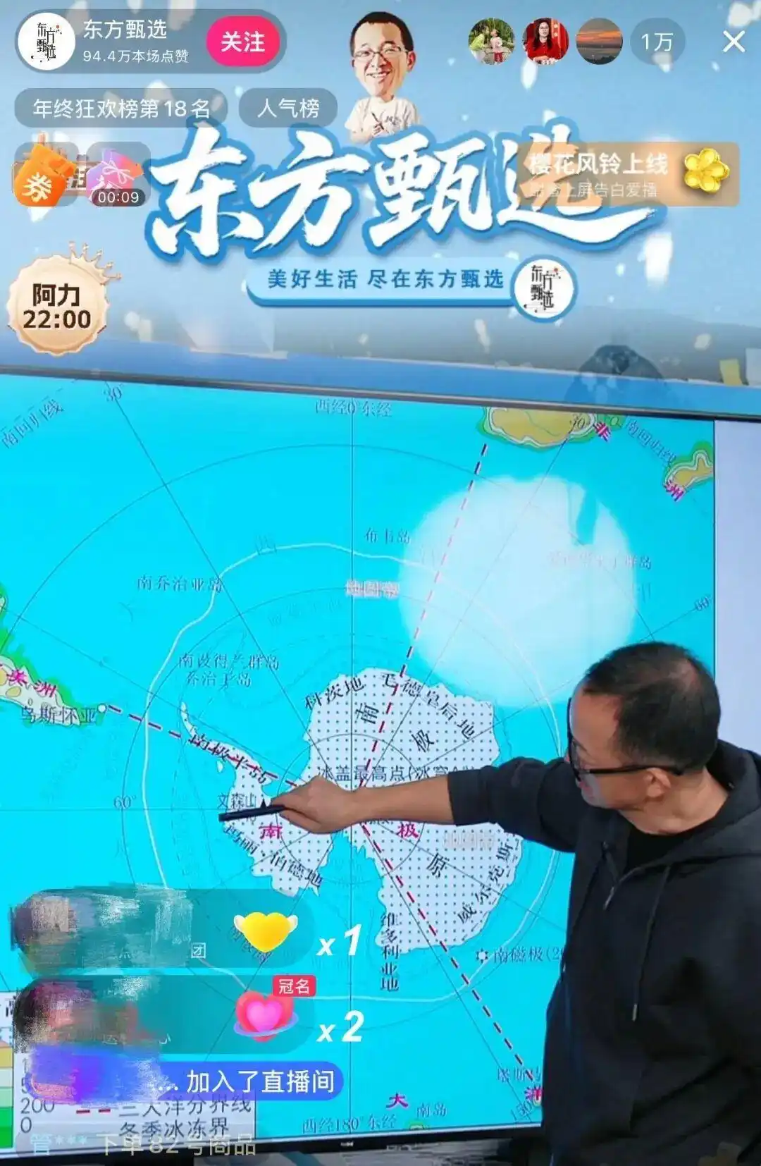 12月15日晚,新东方创始人、东方甄选CEO俞敏洪出现在东方甄选抖音直播间,向网友分享南极趣事。